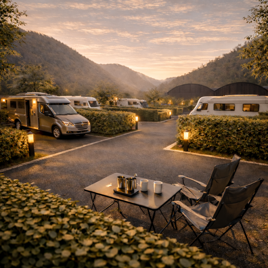 Ubicato in posizione strategica, equidistante da Como, Lecco e vicino a Bellagio, a breve distanza dai centri di Milano e Monza, il complesso offre un'esperienza esclusiva con un approccio sostenibile e servizi innovativi pensati per camperisti attenti al dettaglio e alla qualità.